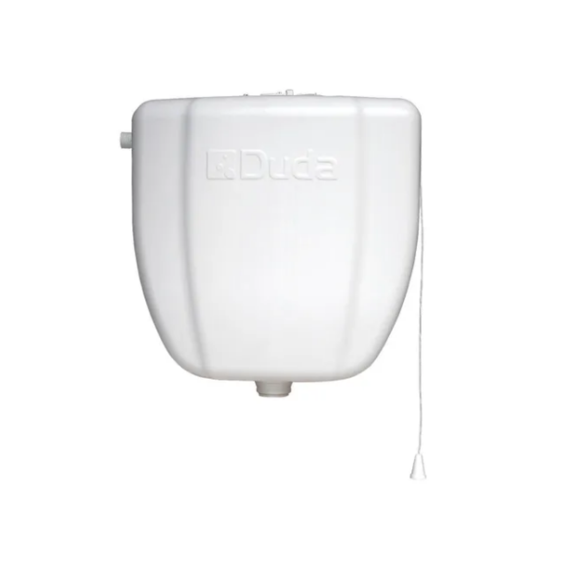Duda A caixa de descarga DUDA é produzida pelo sistema de extrusão/sopro, feita em Polietileno de alta densidade e possui um sistema de regulagem para 6 e 9 litros de descarga controlada, que proporciona redução no consumo de água, podendo operar com pressões de 2 a 40mca.