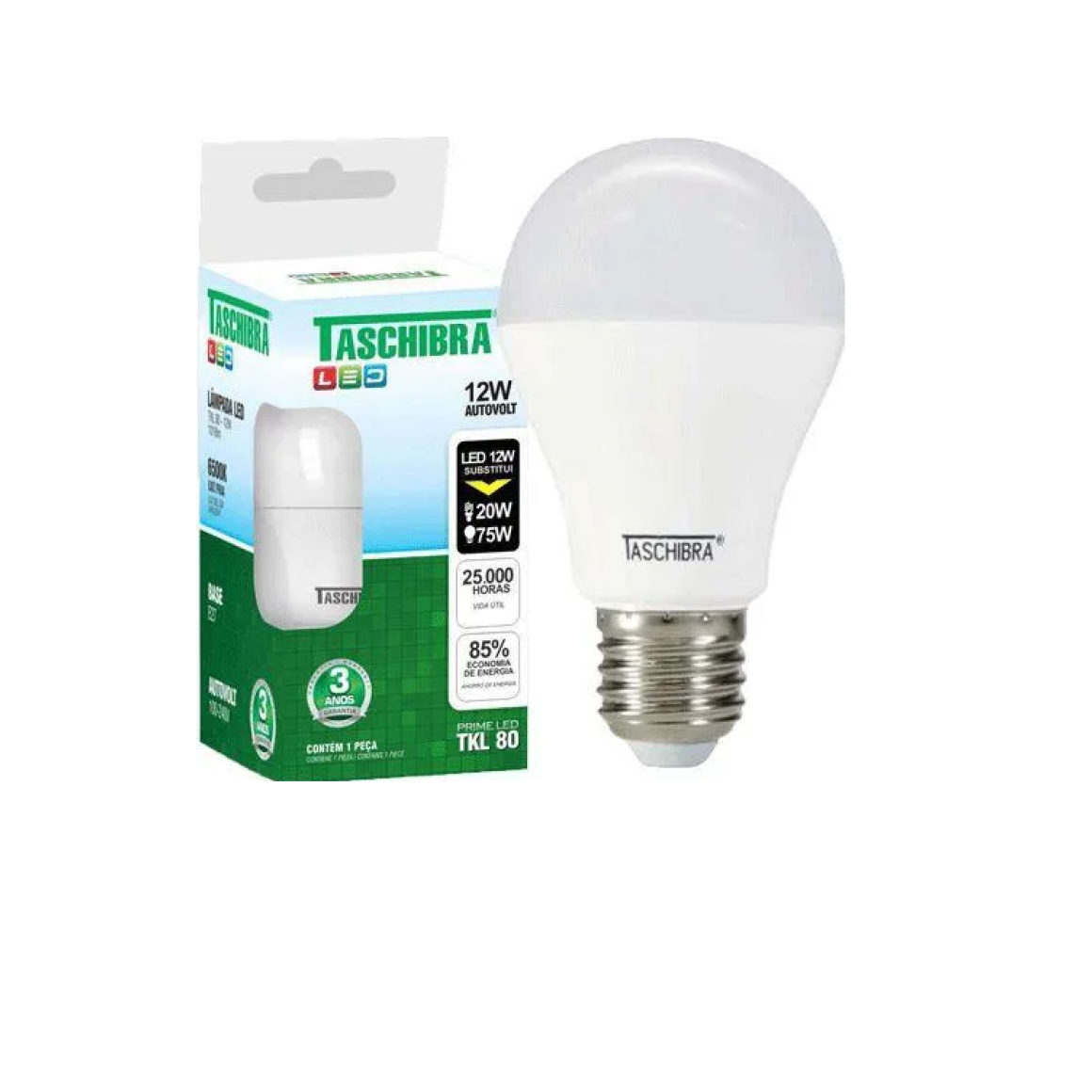 Fabricante Taschibra Número da Peça ?TKL 80 Certificação ?INMETRO Tamanho ?1 Contagem (Pacote de 1) Cor ?Branco Estilo ?Tradicional Material ?Plástico Formato ?Bulbo Tipo de fonte de energia ?Energia elétrica Voltagem ?166 Volts, 110 Volts